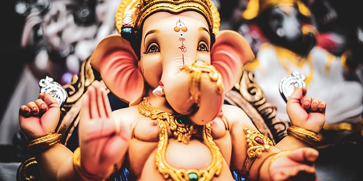 Ganesha es una de las deidades más conocidas de la India. Tiene cabeza de elefante, 4 manos y comúnmente se lo llama “el removedor de obstáculos”.