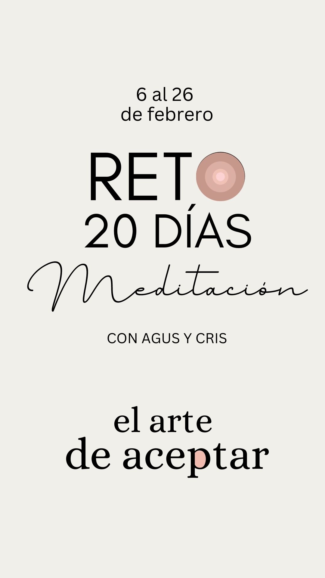 Del 6 al 26 de febrero: 20 días, 20 minutos por día, 20 oportunidades para practicar la aceptación con una meditación guiada por Agustin Burton y Cristina Jimenez.